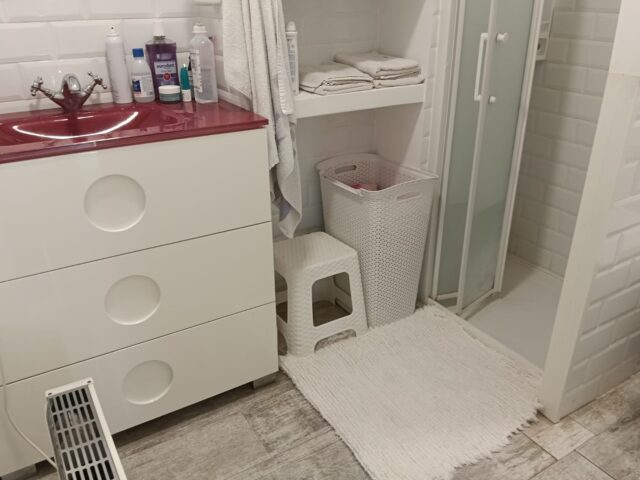 Binnen bestaat het appartement uit twee lichte slaapkamers, beide met inbouwkasten, en een recent gerenoveerde badkamer. De aparte keuken biedt een comfortabele en functionele ruimte, voorzien van apparatuur en met toegang tot een praktische bijkeuken die als wasruimte wordt gebruikt. Het appartement is voorzien van airconditioning in de woonkamer, wat het hele jaar door comfort garandeert. De huidige eigenaren hebben veel verbeteringen aan de woning aangebracht, zoals nieuwe vloeren, mediterrane tegels op de muren, een nieuwe badkamer, enz.