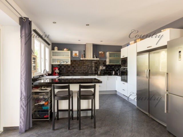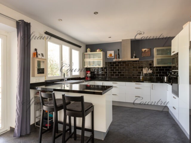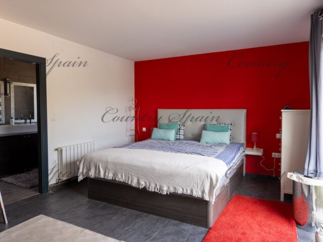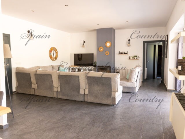 De hoofdwoning bestaat uit een entree met gastentoilet, een eerste slaapkamer/studeerkamer. Vanuit de entree kom je in een zeer grote leefruimte met een moderne volledig ingerichte keuken, salon/eetkamer met inbouw open haard. Een gang leid je naar het slaapgedeelte bestaande uit 2 slaapkamers, een badkamer en een master bedroom met eigen badkamer (bad & douche). Alle slaapkamers hebben ingebouwde kasten. De woon/eetkamer heeft grote ramen die uitkijken op een groot overdekt terras en het zwembad. Het terras biedt uitzicht op het dorp met een kasteel. Naast de keuken is een bijkeuken met wasgedeelte en voorraadopslag. En daarnaast nog een berging. Achter de eetkamer is nog een ruimte die gebruikt kan worden als speel- of werkkamer.