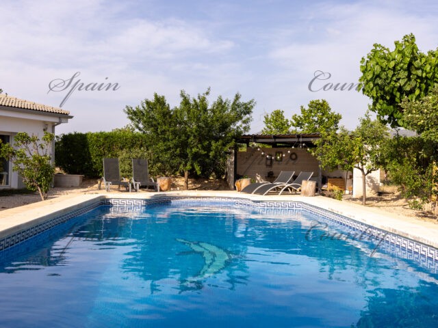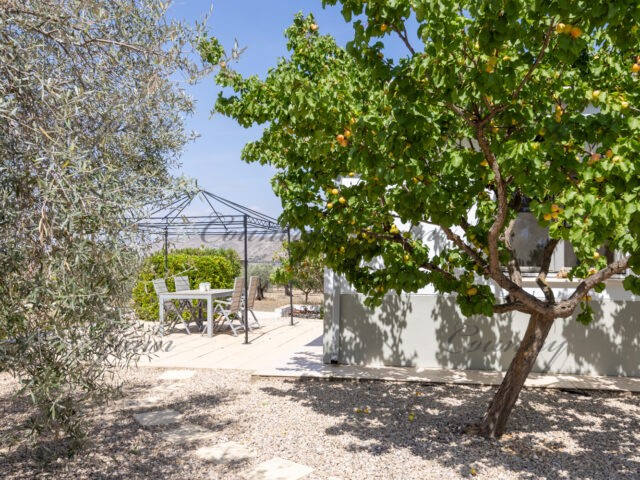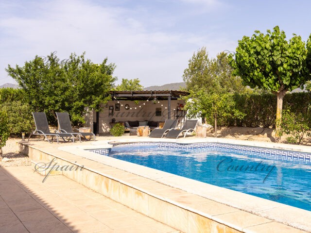 Toegang tot het terrein is via een elektrische poort. Op het perceel heb je een zwembad van 10x5m, een carport en een gebouwtje van 48m2 dat gerenoveerd kan worden om er een extra appartement/casita van te maken. Het terrein is beplant met olijf- en amandelbomen en andere fruitbomen.