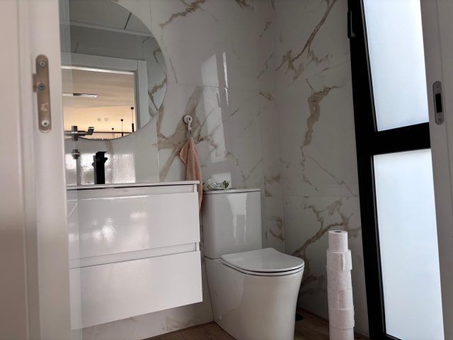 Outside, the villa continues to impress. The private plot features convenient off-road parking with a carport, along with a useful storeroom and a separate utility/washing room, ensuring practicality without compromising on style. The outdoor space offers excellent potential, with ample room to create your own private swimming pool—perfect for making the most of the sunny climate.