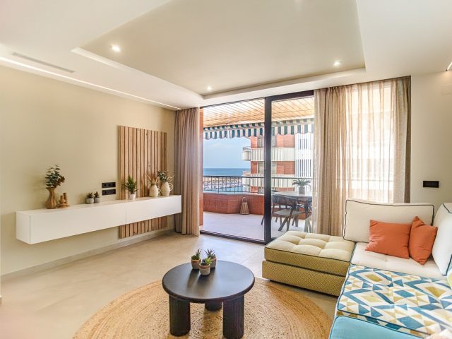 Energy Rating: In ProgressThis fully renovated top-floor apartment on the first line combines luxury, comfort, and an exceptional location. Finished with materials of the highest quality, it offers stunning sea views and access to a communal swimming pool. The property features three spacious bedrooms and three modern bathrooms, ideal for both personal use and guests.