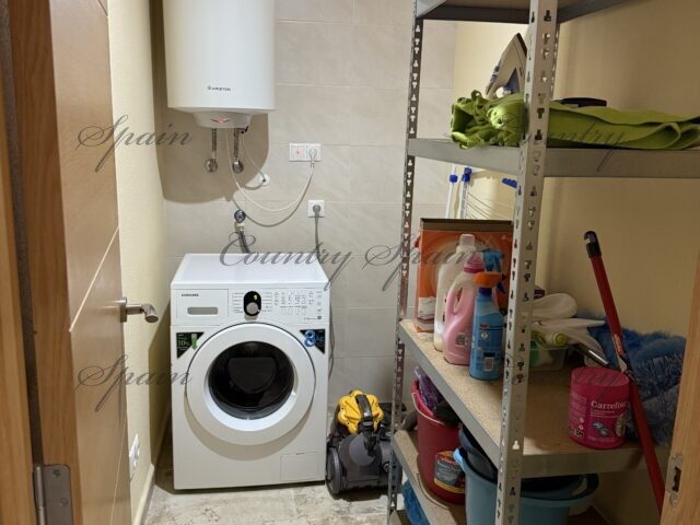 2 bedrooms, bathroom with bathtub/shower, toilet and washbasin cabinet, a laundry room, a large living room/hobby room, a storage place and another storage cupboard (under the stairs). Again, the bedrooms have fitted wardrobes.