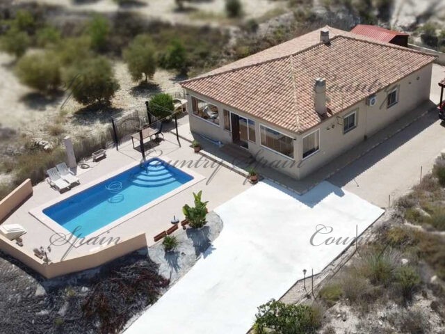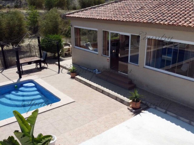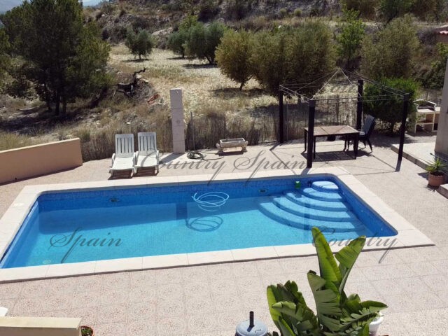 The villa has electricity, agricultural water, aircon, pre-installation for central heating and an alarm.